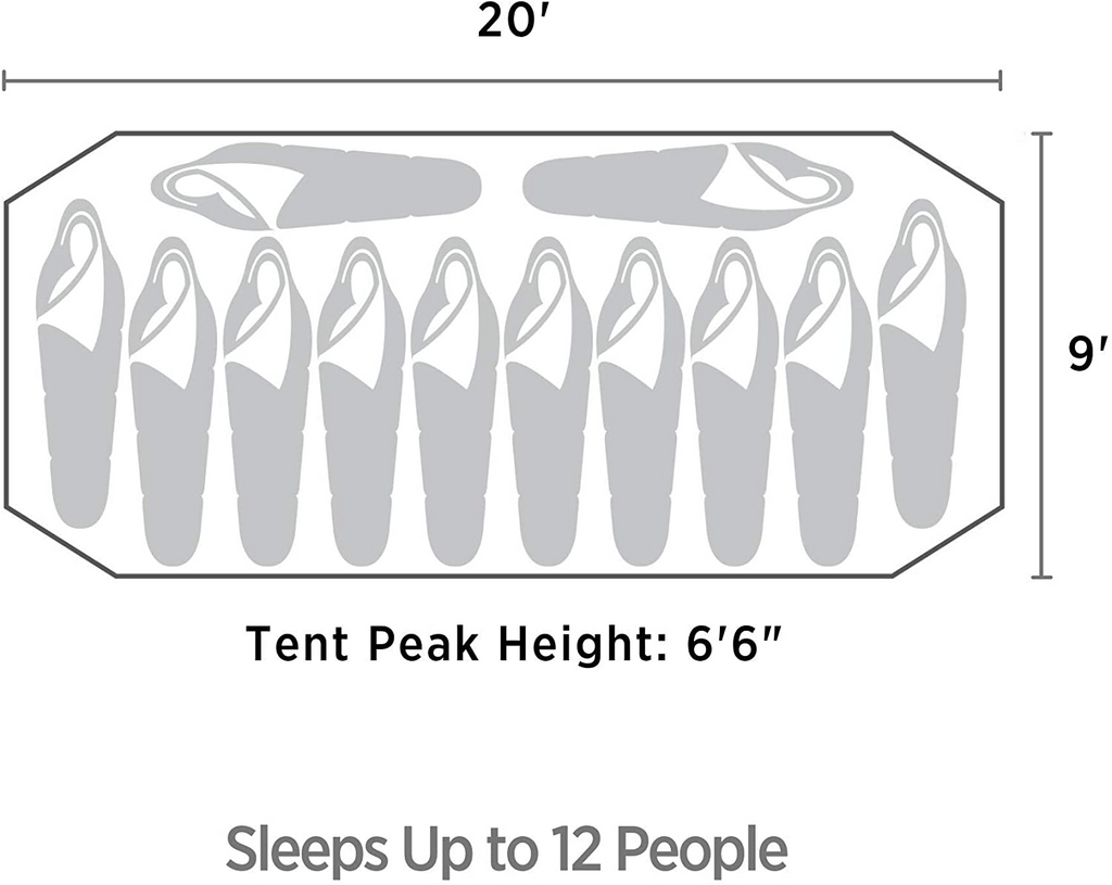 - DIMENSIONS: 14 feet x 8 feet x 5’10” feet and includes attached rainfly, tent stakes, guy lines and all assembly instructions